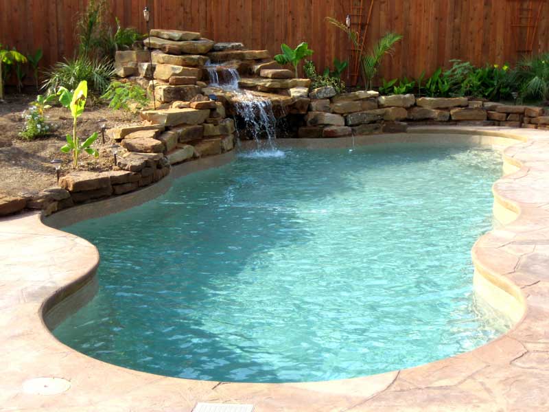 curved pool with waterfall