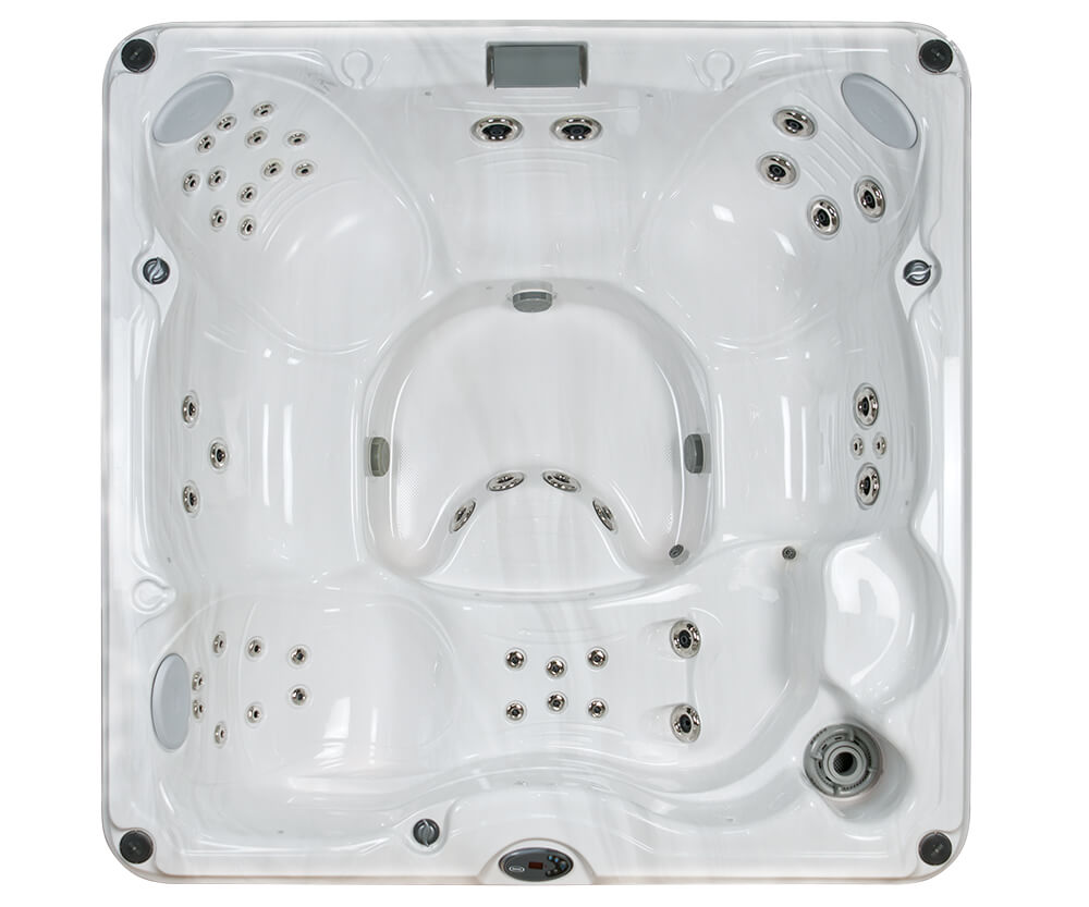 A combination of a lounge seat and open seating with Classic Jets offers a complete hydromassage experience with tested jet placement.