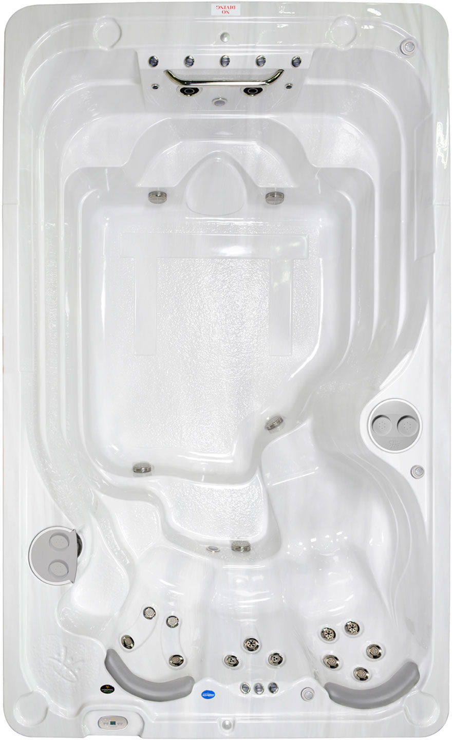 This Swimspa is designed to maximize the swimming area by eliminating the seated areas. Entrance from three sides allow customers lots of versatility when installing this unit.